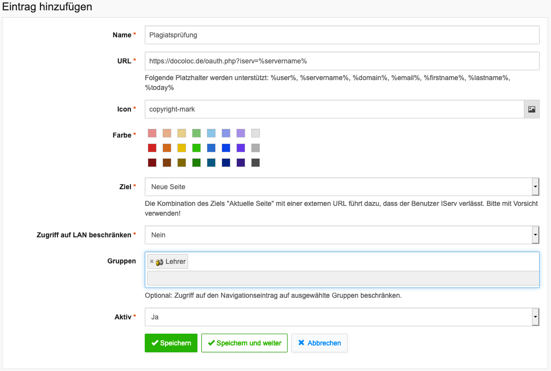 Sobald wir diesen Namen in Ihrer Lizenz hinterlegt haben, können Sie mit den folgenden drei Schritten Docol©c in das IServ-Portal Ihrer Schule einbinden.