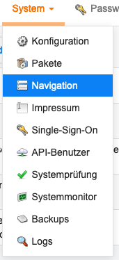 Zur Anzeige der Docol©c Plagiatsuche in der Navigationsleiste Ihres IServ-Portals finden Sie in der Verwaltung im Menü "System" den Punkt "Navigation":