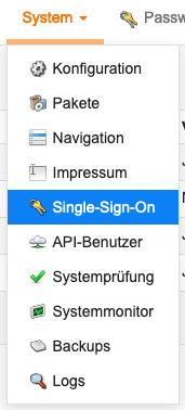 Ist das IServ-Paket "IServ 3: OAuth- und Open-ID-Connect-Server" auf Ihrem IServ installiert, finden Sie im Verwaltungsbereich des IServ-Portals im Menü "System" den Punkt "Single-Sign-On":